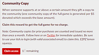 Another successful month! An additional batch of community copies have been generated by the gracious donations of fans like you over the past month! While supplies last (16 were issued just now), you...